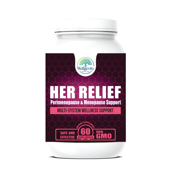Hormonal transitions don’t have to take over your life. HER RELIEF is a daily, non-hormonal supplement designed to support women through perimenopause and menopause by promoting hormone balance, comfort, and overall wellness—naturally.