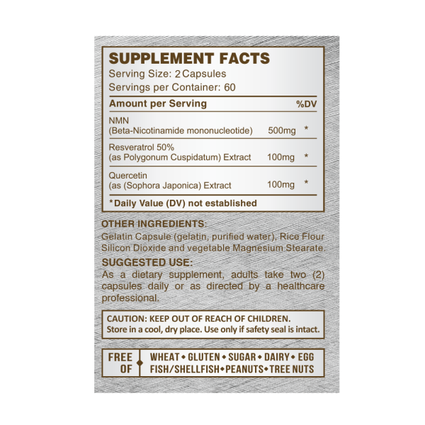 | NMN (β-Nicotinamide Mononucleotide) | 500 mg | † |